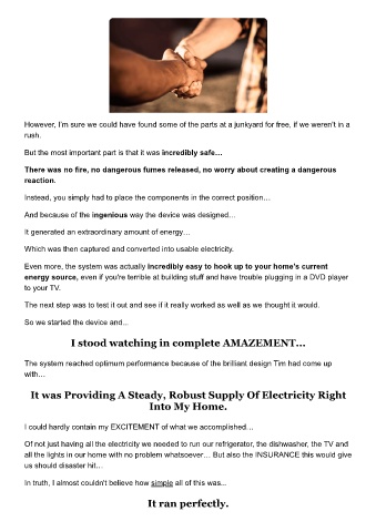 Of not just having all the electricity we needed to run our refrigerator, the dishwasher, the TV and