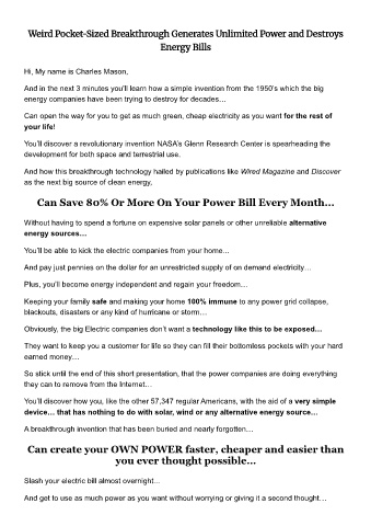 Weird Po cket-Sized Breakthrough G enerates Unlimited Power and D estroys